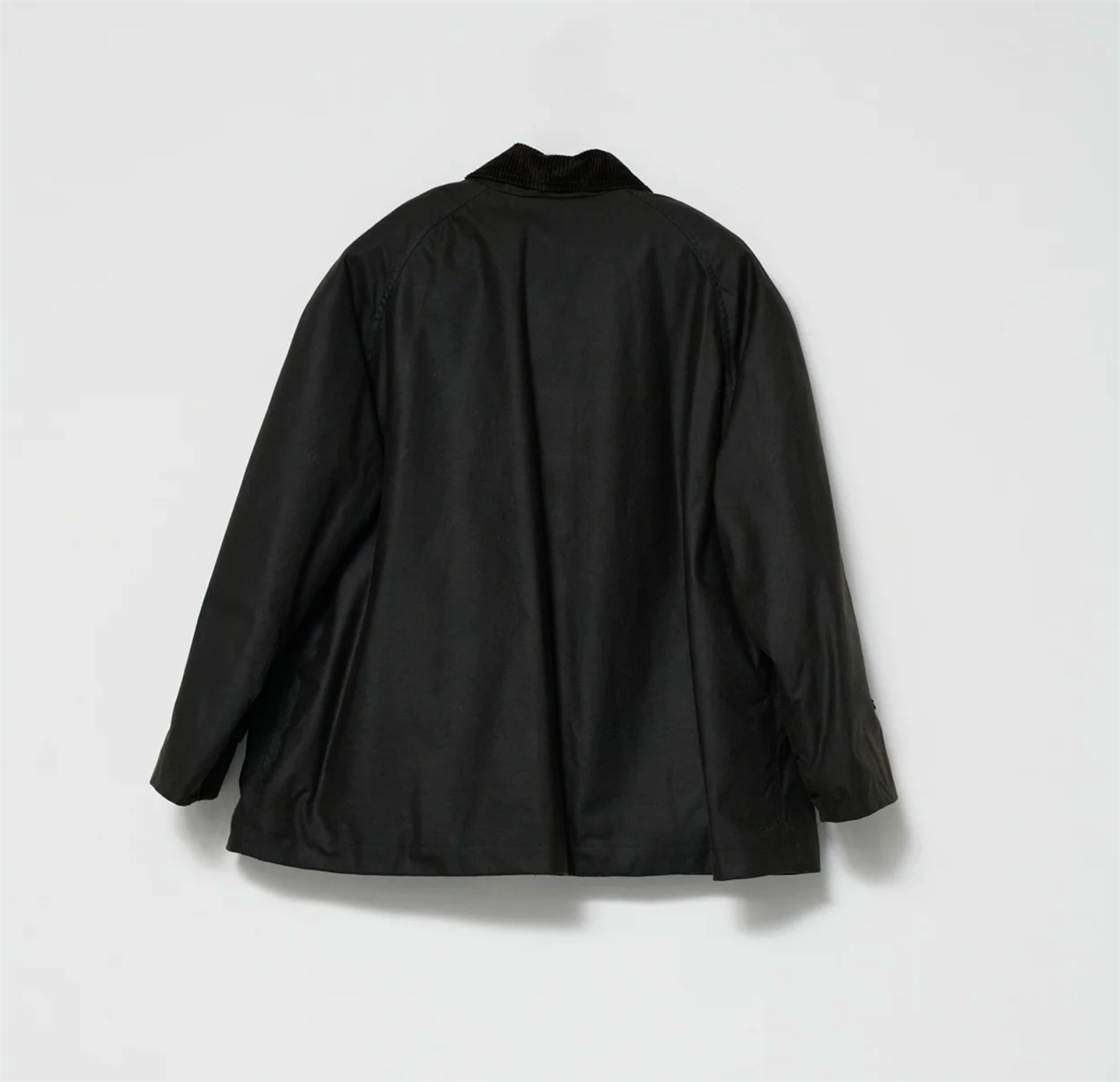 Oilskin Jacket with wool lining, two large pockets and corduroy collar.