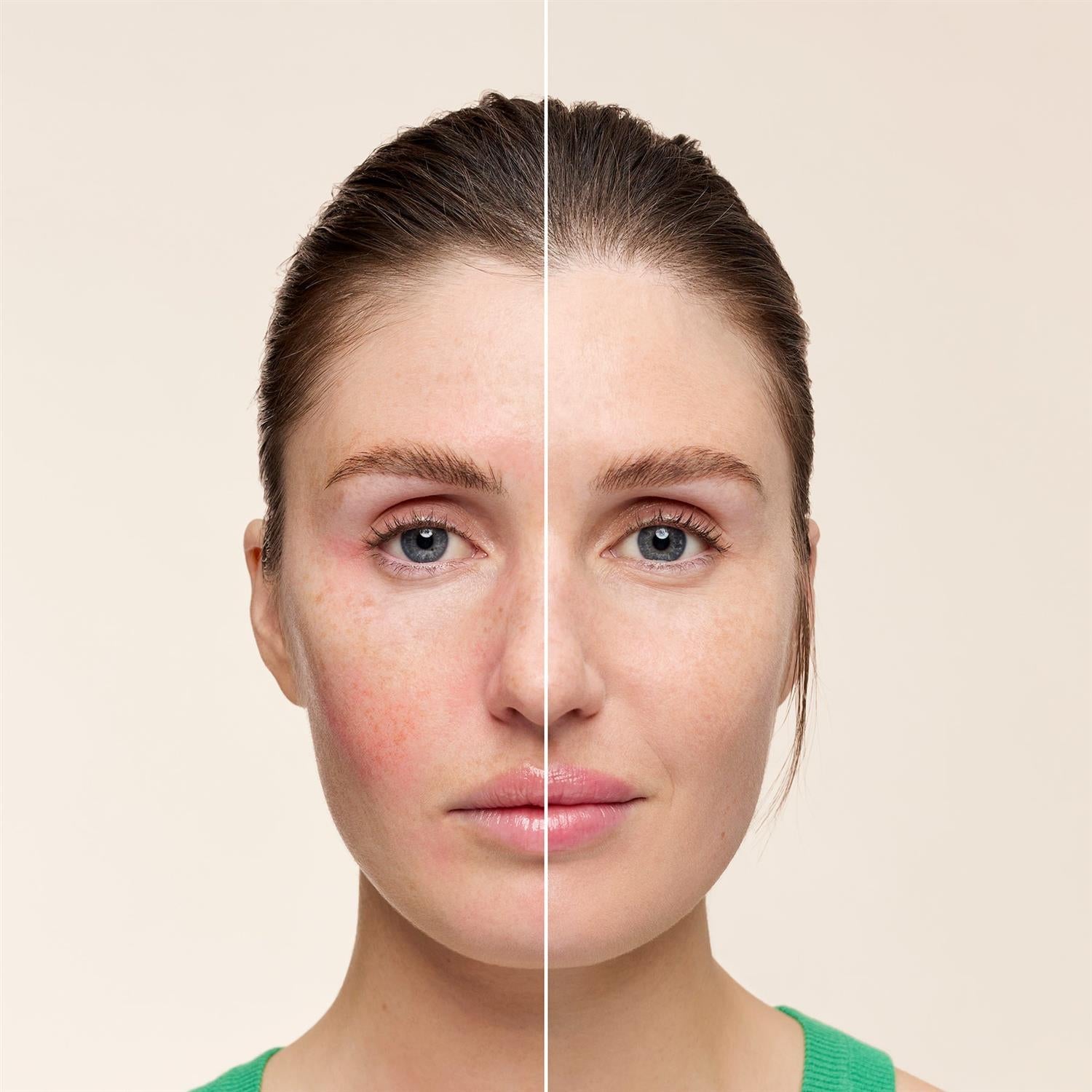 Påfør en liten mengde på områder med rødhet. Kan brukes alene eller under sminke.