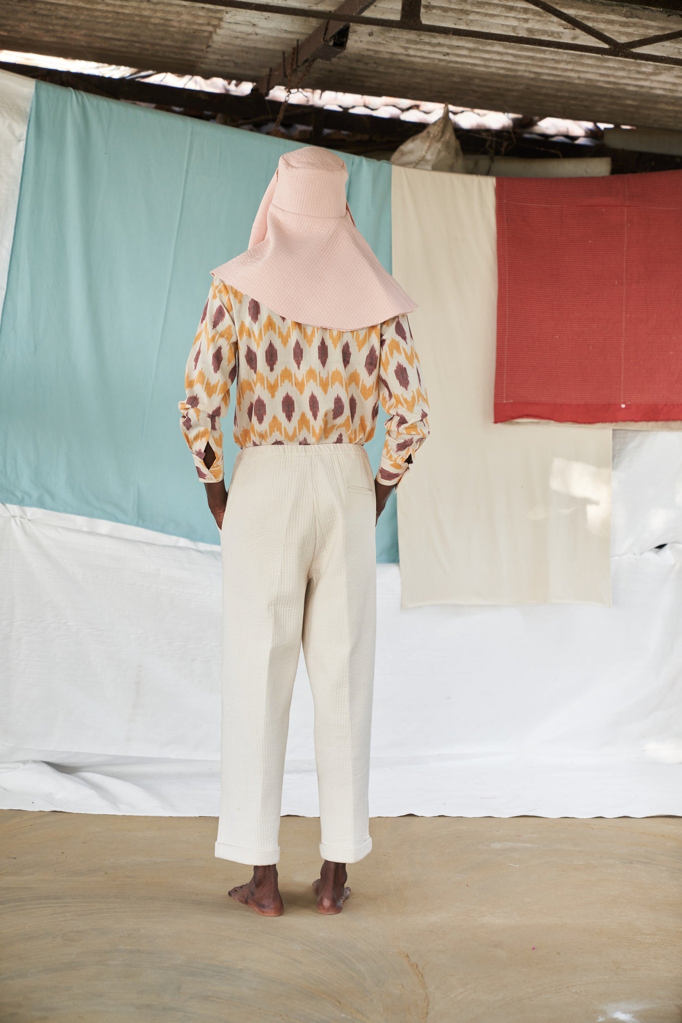 Quilted chinos made entirely from regenerative cotton to the highest quality from seed to sew. The midweight voile fabric is filled with organic cotton wadding and comes in a natural ecru hue. Wear all year round with the Tamsin top.