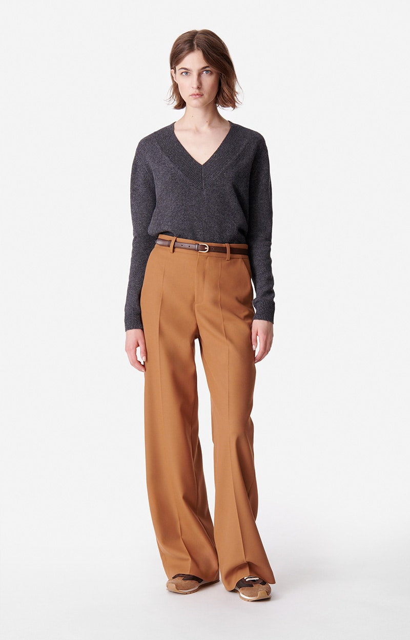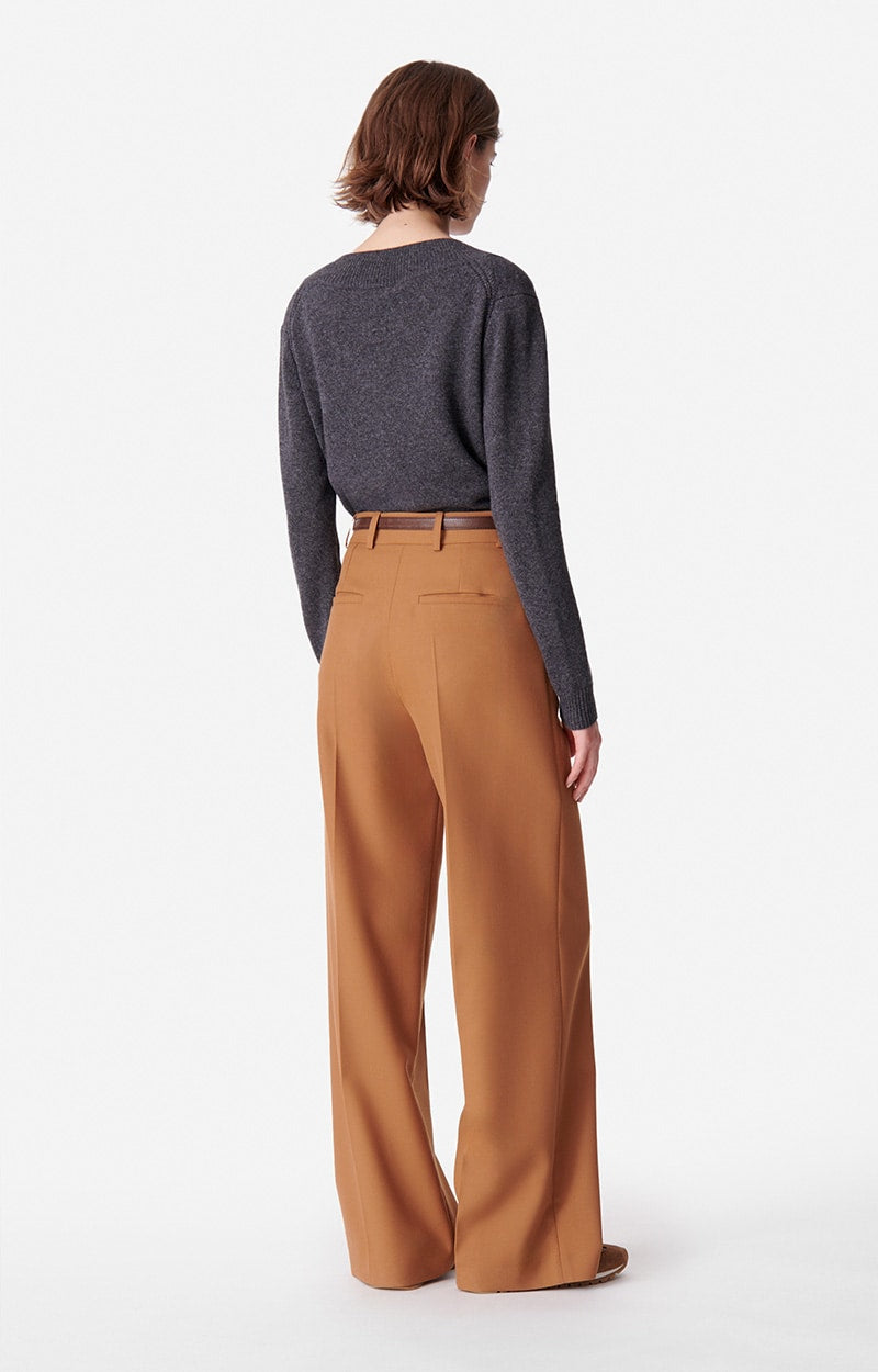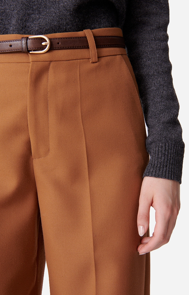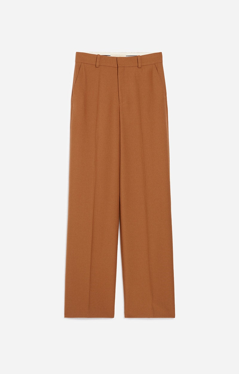 The straight-cut, high-waisted Dulce pant blends the sophisticated, tailored look of a suit with the comfort of a wide-leg pant, ideal for both work and weekend wear. Caramel-colored, these pants take up the codes of tailoring with a straight, elegant silhouette thanks to their pretty pleats at the front.