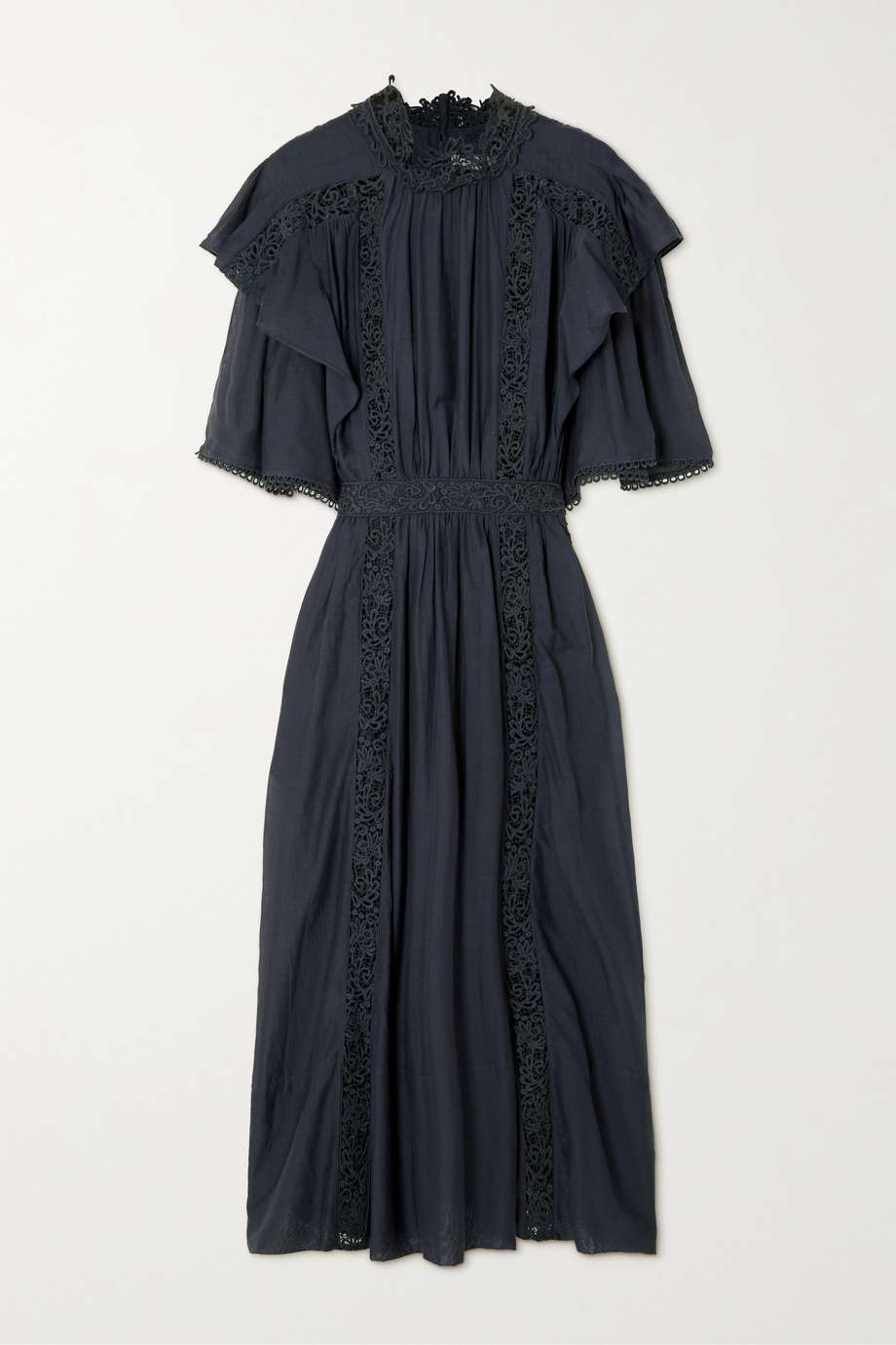 Galina dress is made from lightweight cotton-blend voile that's softly gathered and paneled with lace. The ruffled sleeves enhance its bohemian, feminine feel.