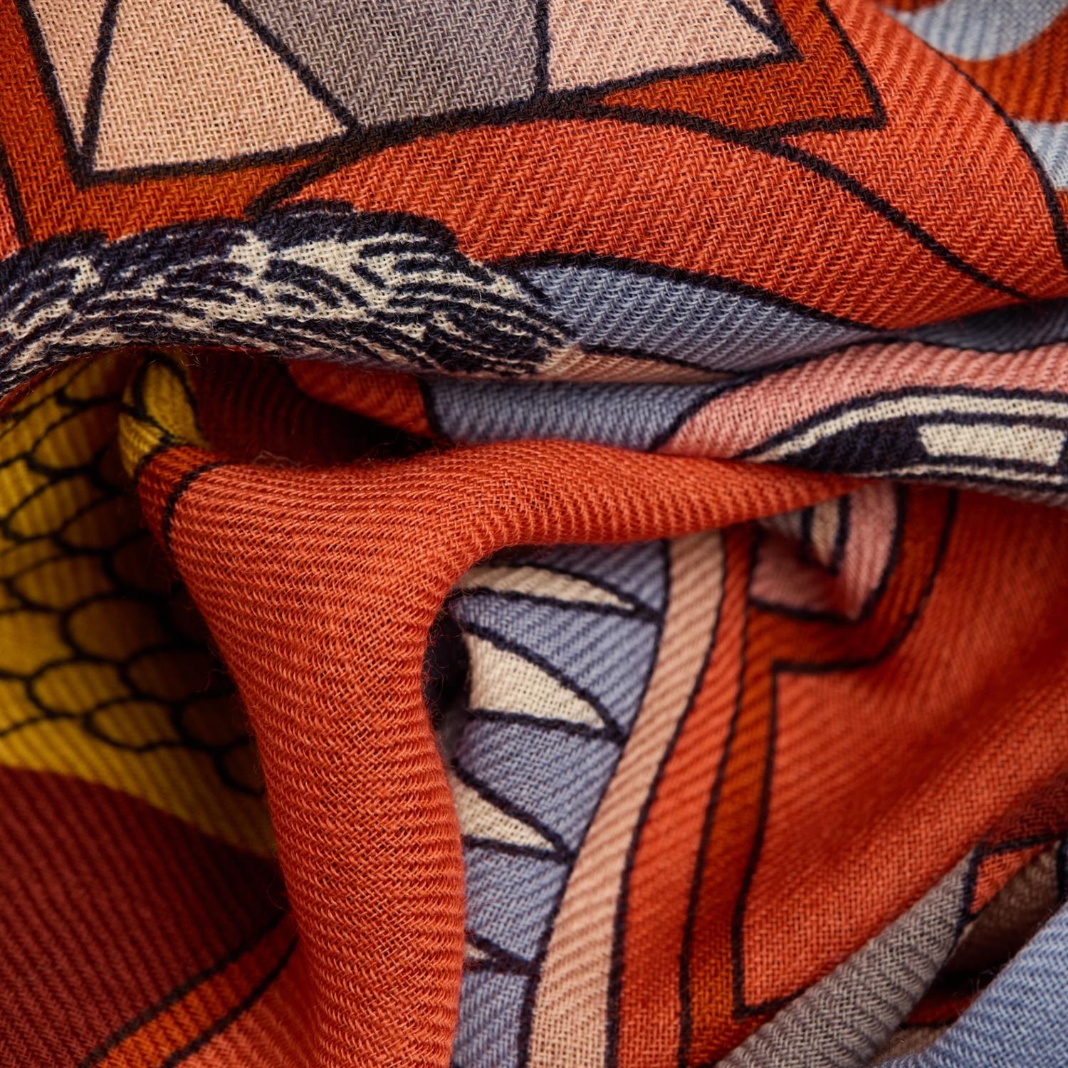 This line of hand-printed scarves comes in several sizes, depending on the design. Soft and ideal for winter, this wool is washable.
