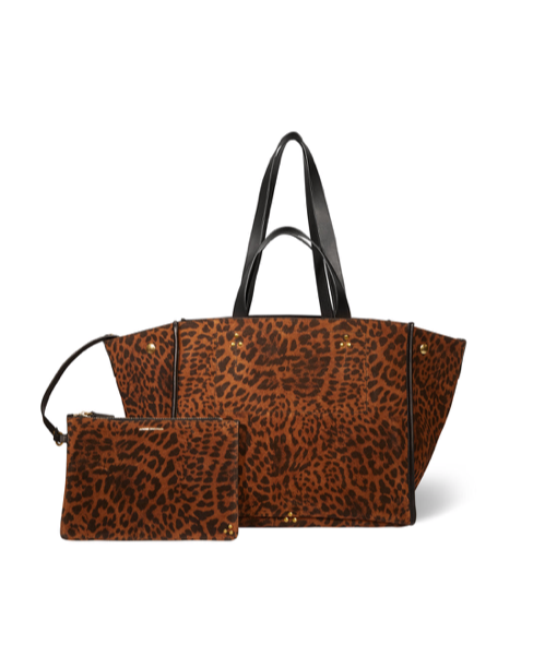 Tote bag, to wear over the shoulder or hand-held. Leather handles. Closing by leather tabs with pressure.