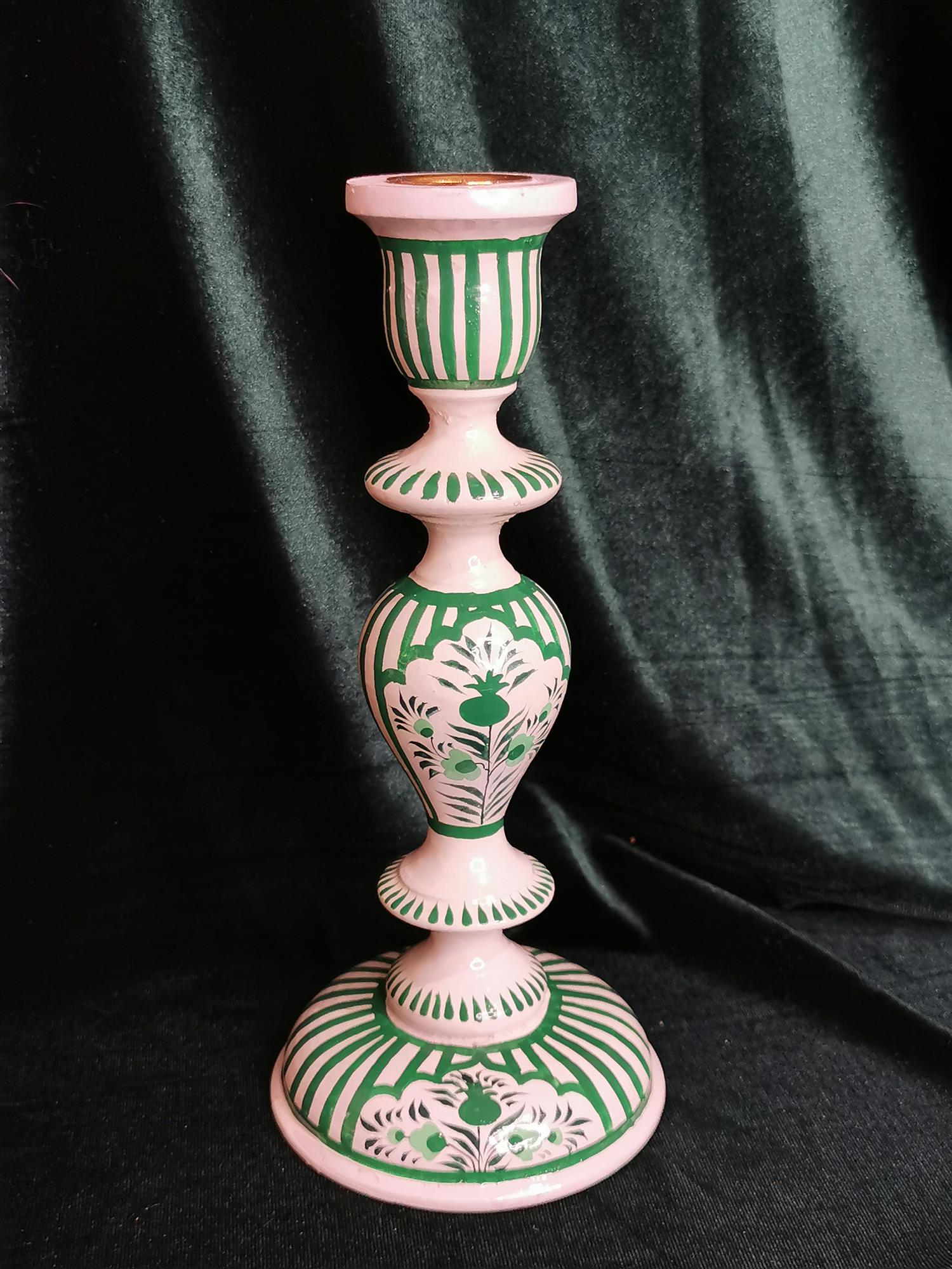 Curiosity Labs Srinagar candlesticks are made of hand-painted wood.