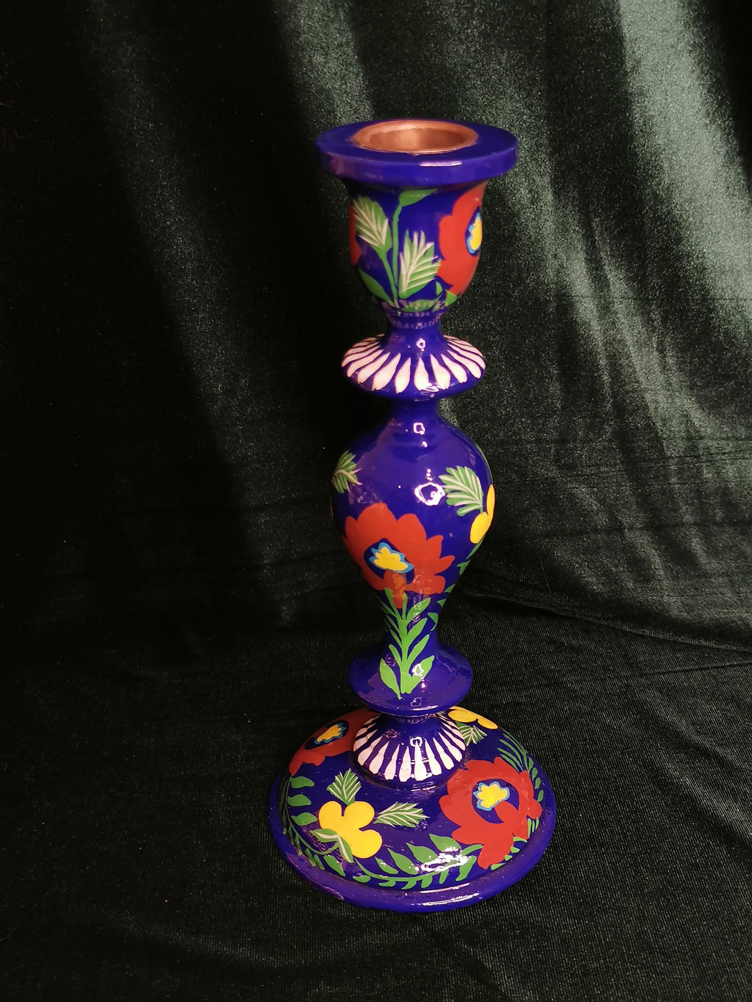 Curiosity Labs Srinagar candlesticks are made of hand-painted wood.