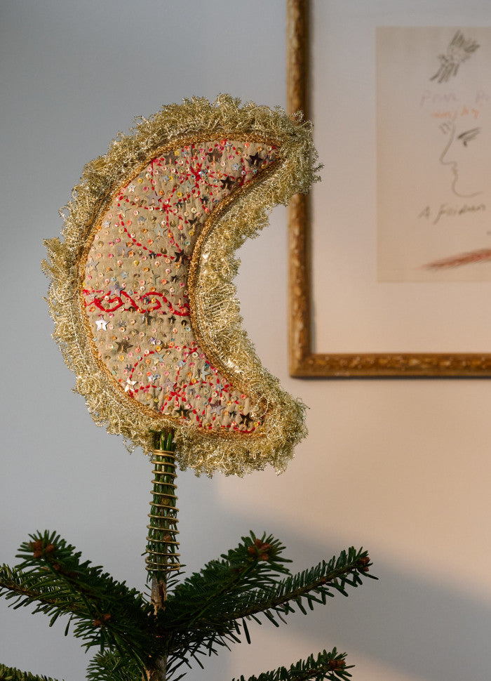 Top Moon is made from vintage kantha leftovers and is a top star made in a beautiful moon shape. It is perfect for decorating the most joyful Christmas tree and spreading the Christmas spirit within the home!