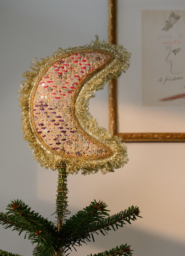 Top Moon is made from vintage kantha leftovers and is a top star made in a beautiful moon shape. It is perfect for decorating the most joyful Christmas tree and spreading the Christmas spirit within the home!