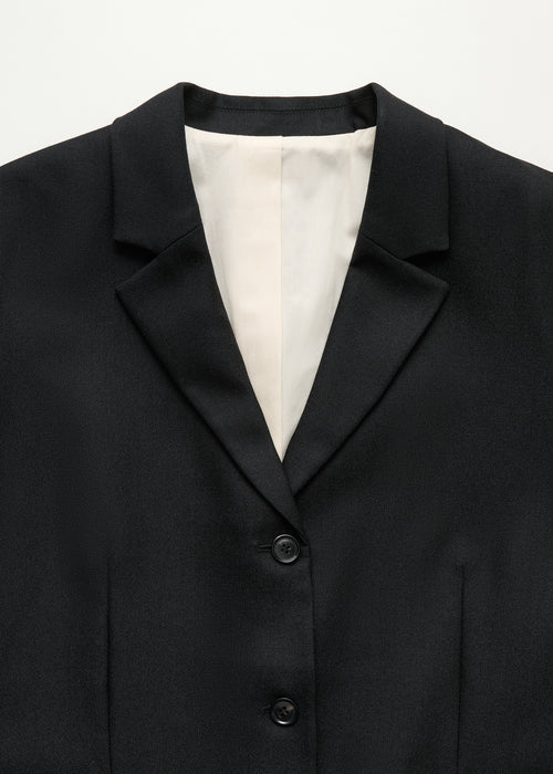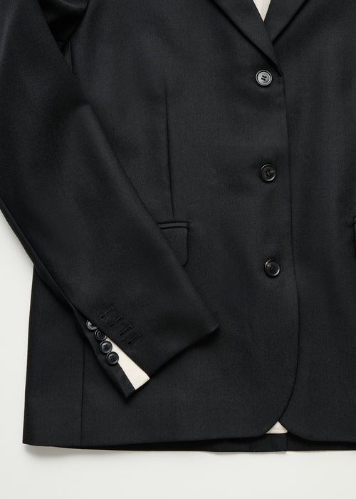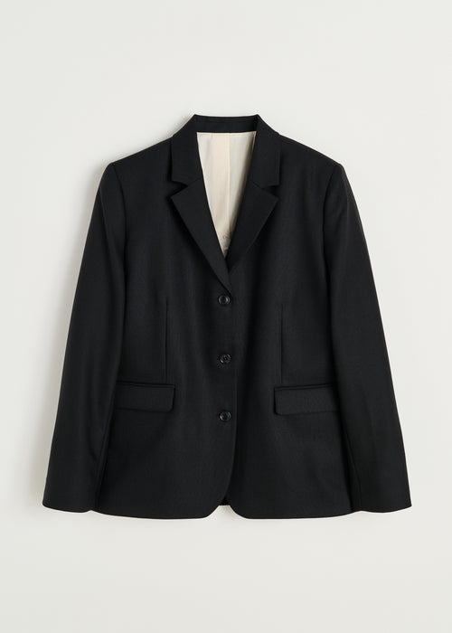 An elegant blazer made from a heavy wool canvas weave. The jacket is designed ina classic fit with piped pockets and inner, contrast coloured stitching offering a unique and characteristic look.