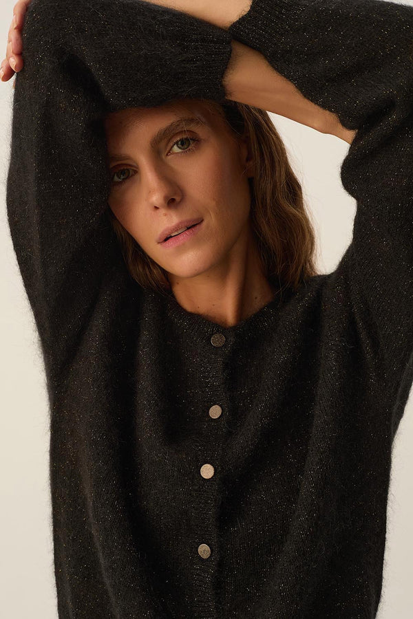 An exceptional knit with a subtly transparent effect and glittery yarn, the Binette cardigan brings a chic, refined look to your winter outfits.