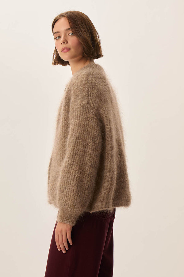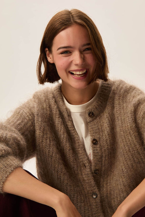 • Long-sleeved cardigan made from kid mohair and merino wool