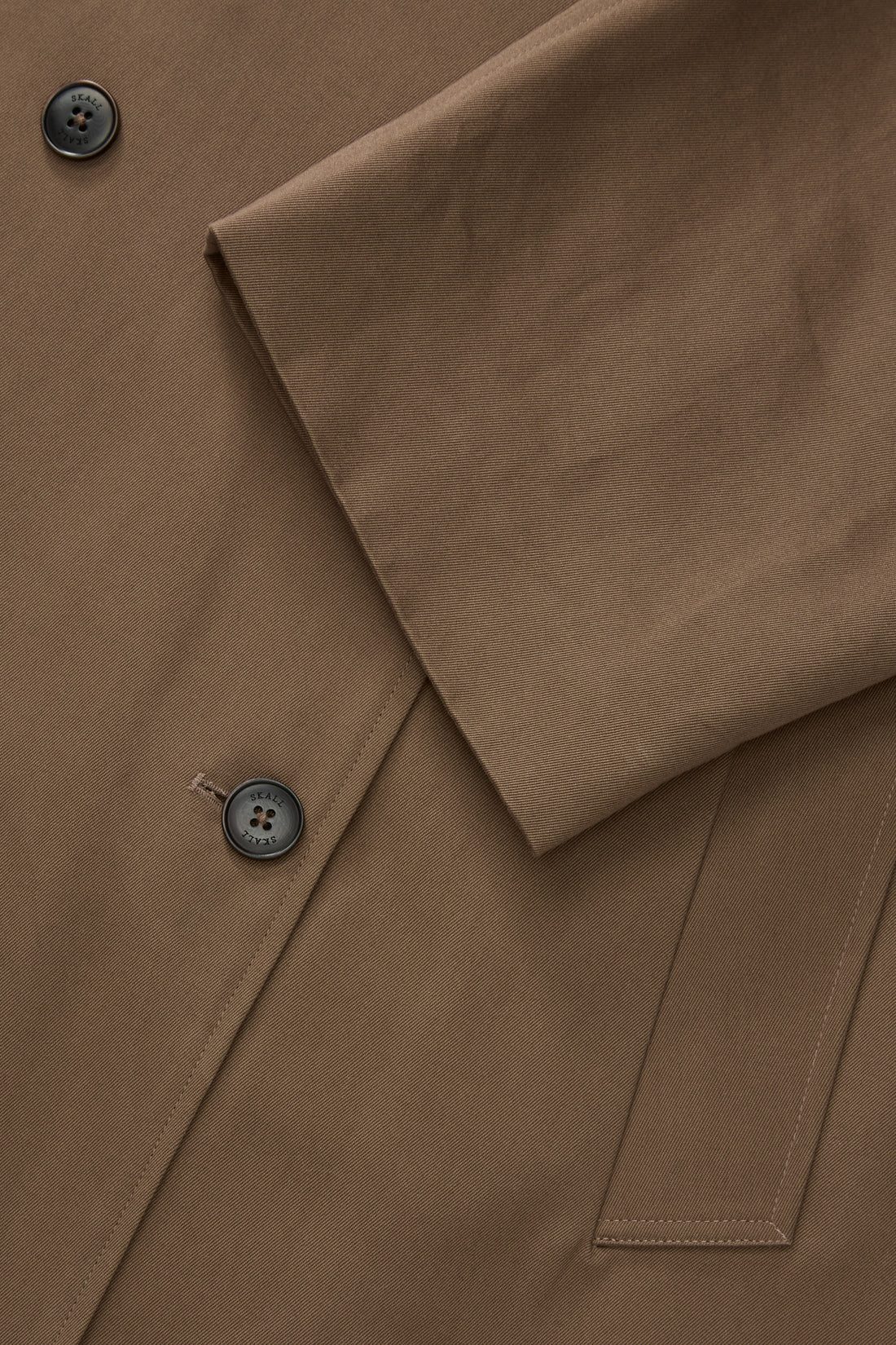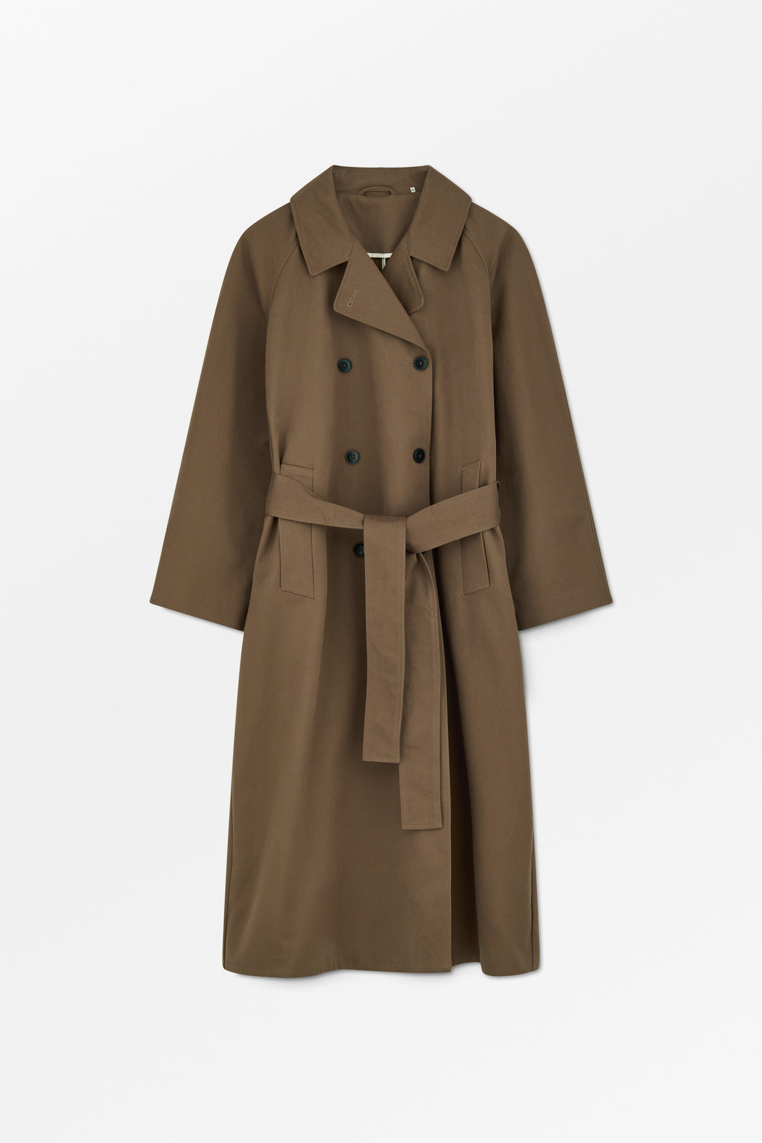 Oversized trenchcoat with double-breasted front and classic detailing.