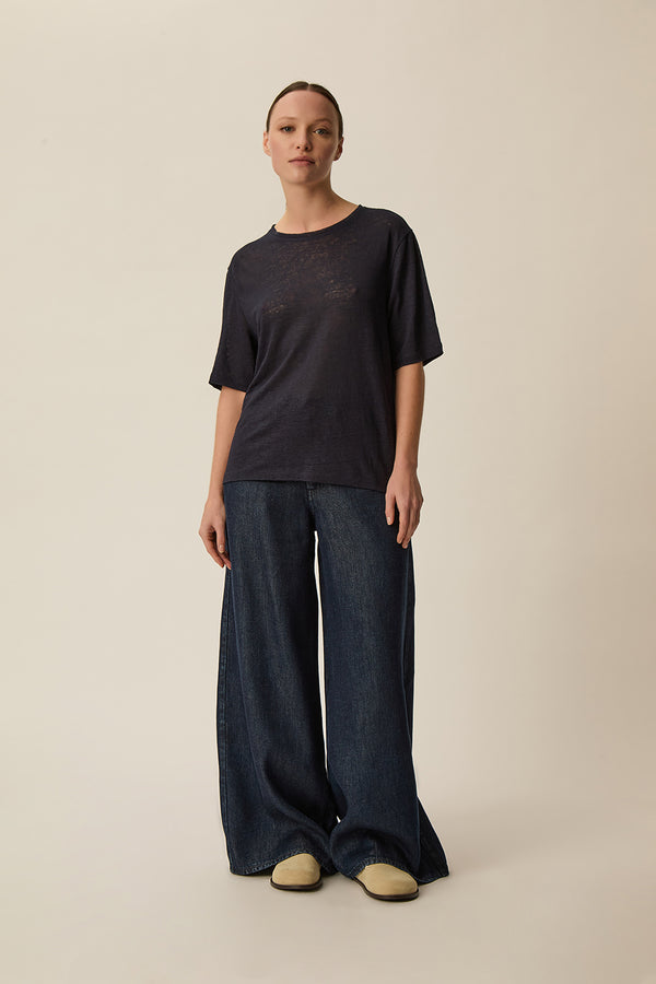 A new wardrobe staple for summer, the Hana linen t-shirt features a stylish and versatile straight cut. Lightweight, comfortable, and breathable, this essential piece, available in a wide range of colors, will perfectly complement the new collection.