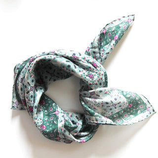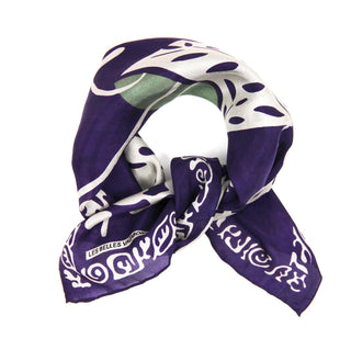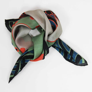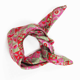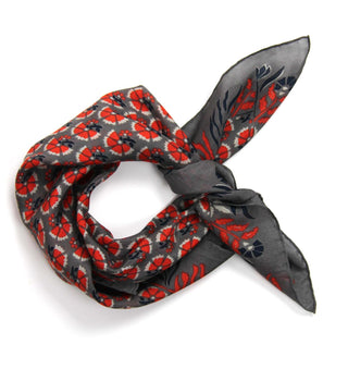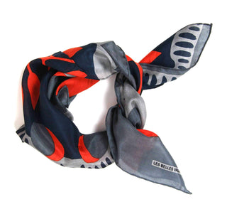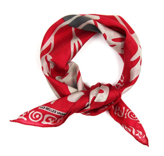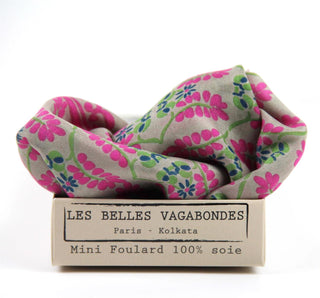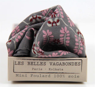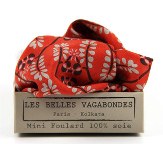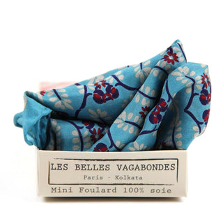 Skjerfene er håndtegnet i Frankrike, håndtrykt i India, og kommer i en eske inspirert av vintage fyrstikkesker.