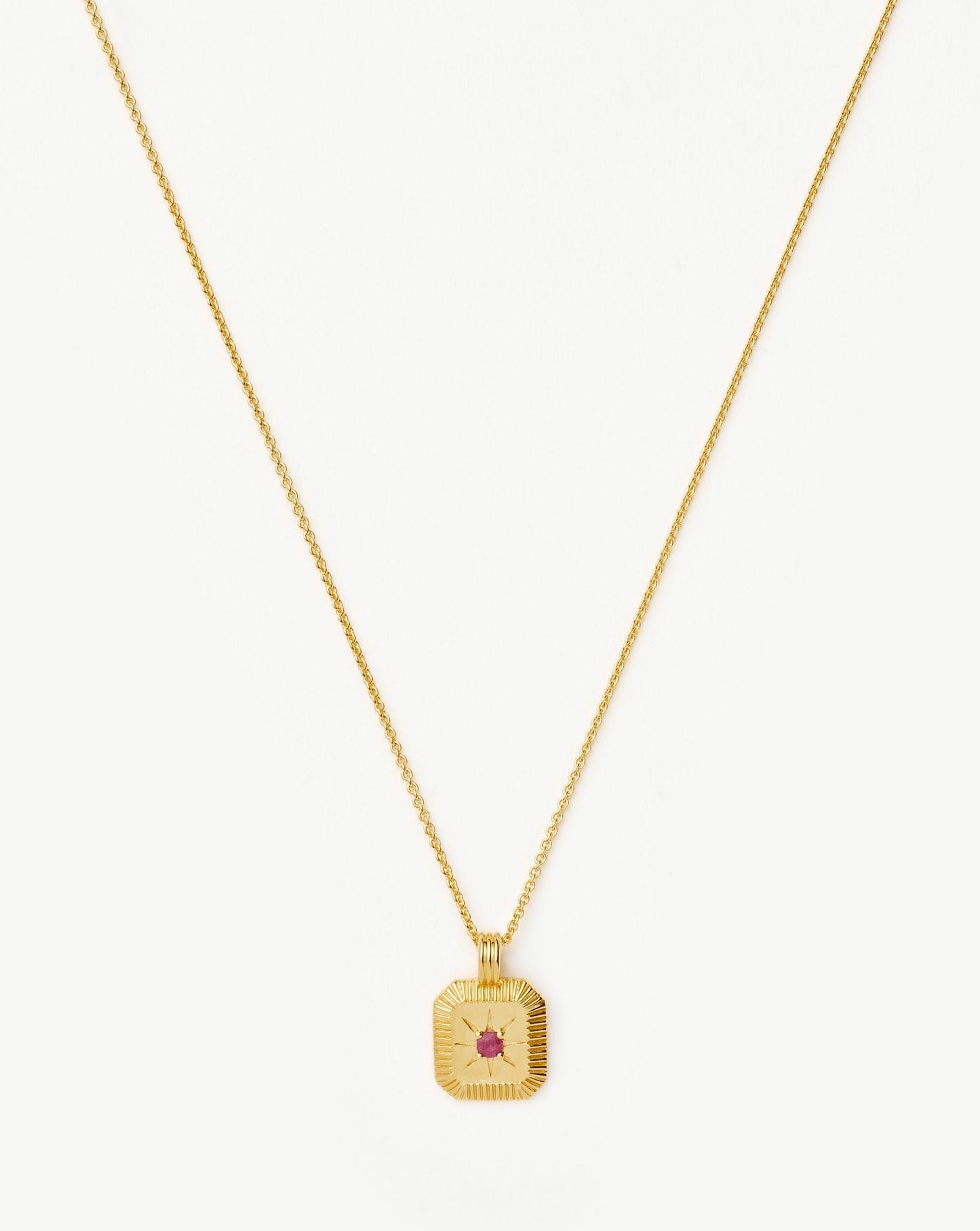 Bring your birth month a whole new meaning with a personalised gemstone necklace. The ridged pendant, held on a short chain necklace, holds a natural ruby gemstone, symbolising protection and prosperity, and is embellished with a central star motif. The perfect gift for anyone born in July.