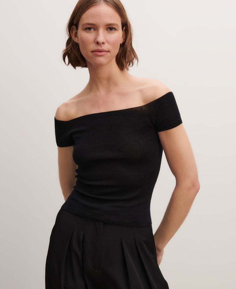 Fitted top in plain knit. Extrafine, seamless ribbed knit for the softest second-skin effect.