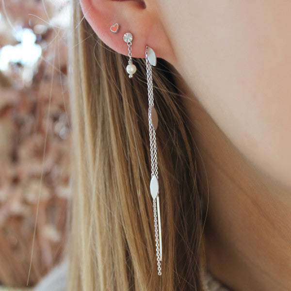 Description: Delicate little ear stud with a short chain with a freshwater pearl at the end.