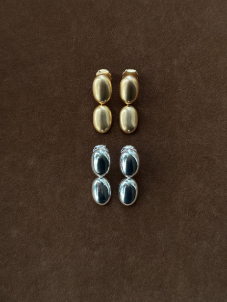 A minimalist stud featuring two sleek, oval-shaped gold or silver domes, adding a modern and elegant touch to any look.