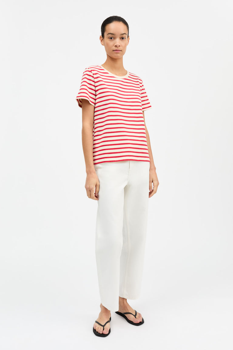 SKALL - Marron Regular Tee - Off White/Red Stripe