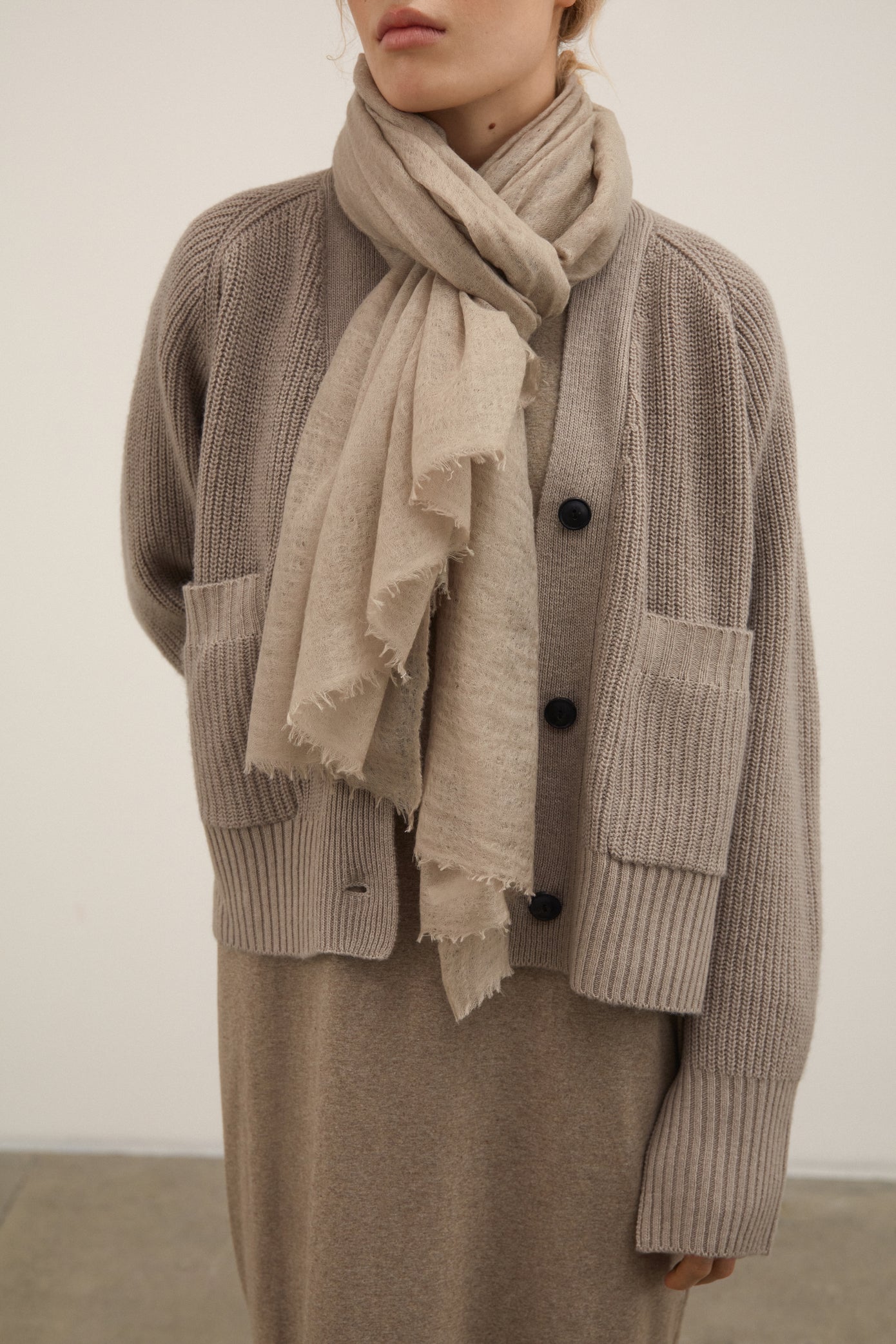 Made from pure cashmere, POON is unbelievably soft and cloud-like with an ultra-plush feel, making it a dream to wear. The light and felt-like texture is complimented by the delicate frayed edges. Wear yours as a light shawl on cool summer evenings, or pair with a warm knit during the cold months.