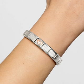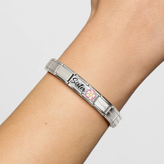 Nomination - Link DOUBLE CLASSIC DETAILED steel enamel cz and 925 sterling silver SISTERS WITH FLOWER