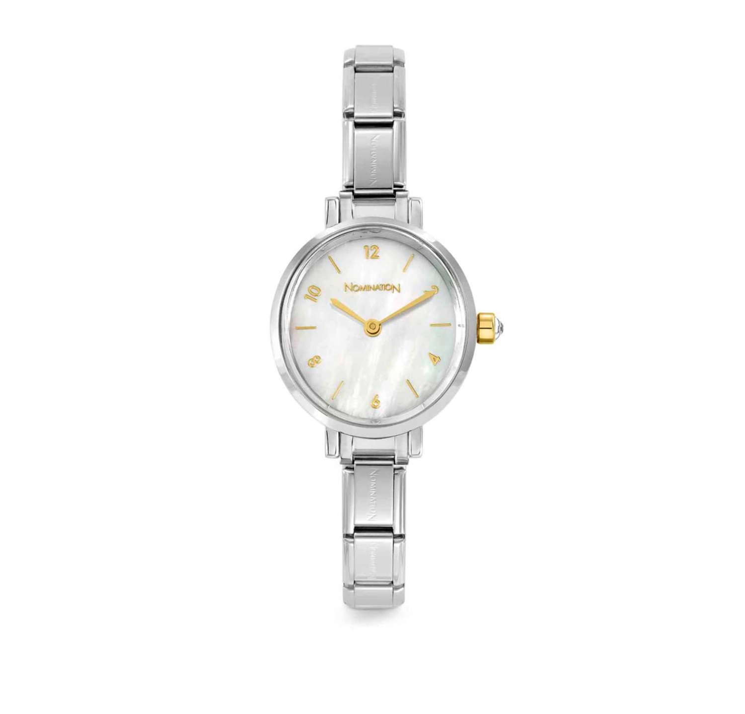 Nomination - PARIS watch with steel strap and OVAL HANDS with CZ WHITE MOTHER-OF-PEARL