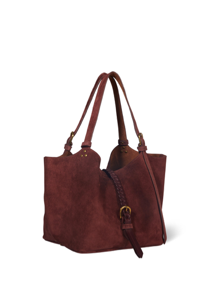 Bag with adjustable handles from 25 cm to 56.5 cm, allowing for hand or shoulder carry. Closure with a hand-braided central tab. Designed with a single main compartment and a pouch attached inside with a leather tie.