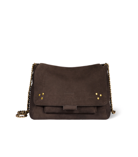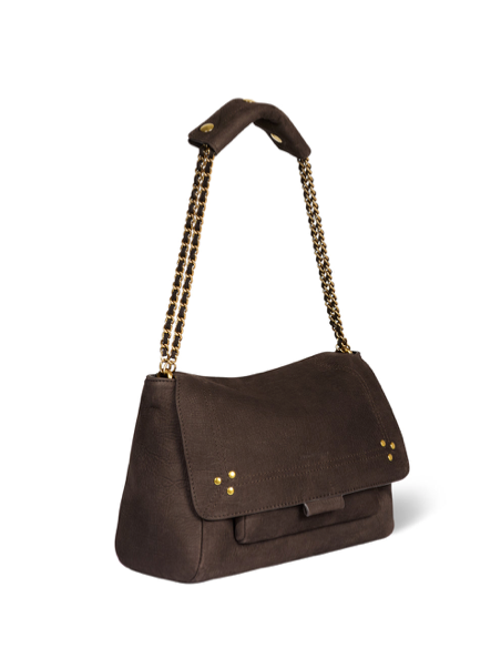 Adjustable chain and leather shoulder strap measuring 105 cm. Wide leg shoulder belt. Flap with snap button closure. One small pocket under the flap. One exterior zipped pocket. One interior pocket. One key hook inside.