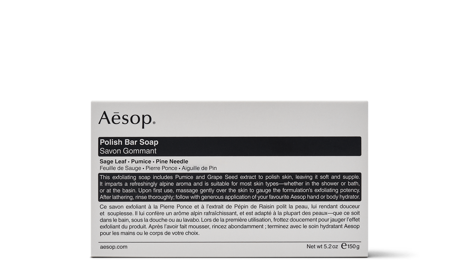 An exfoliating bar soap replete with Pumice and Grape Seed to polish and cleanse most skin types—especially dry, patchy skin. For use while bathing or at the basin.