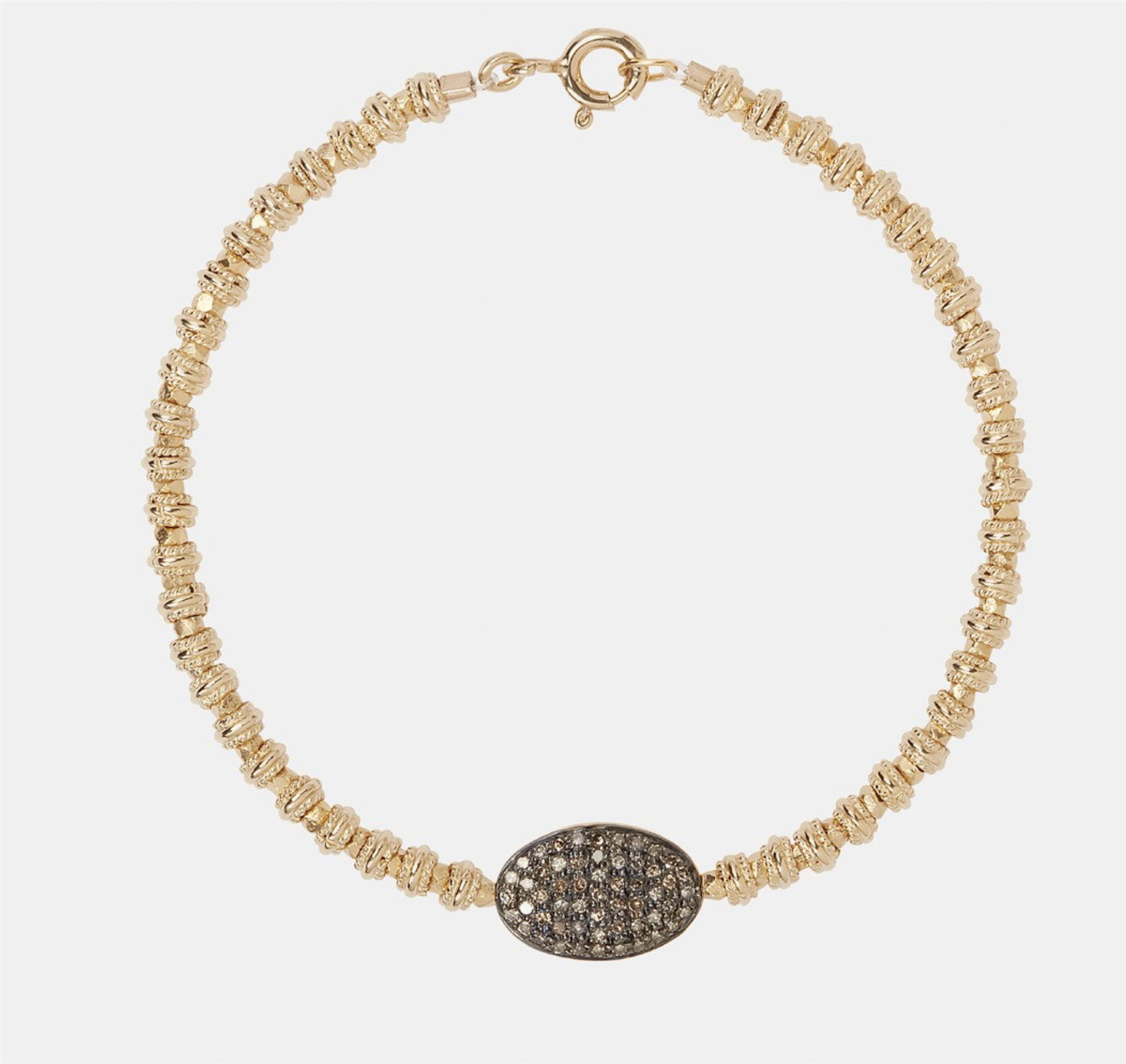 24 karat gold vermeil bracelet and diamond-paved on oxidized silver.