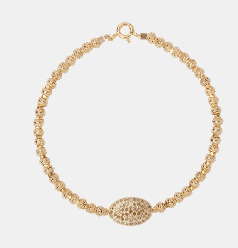 24 karat gold vermeil bracelet and diamond-paved on oxidized silver.