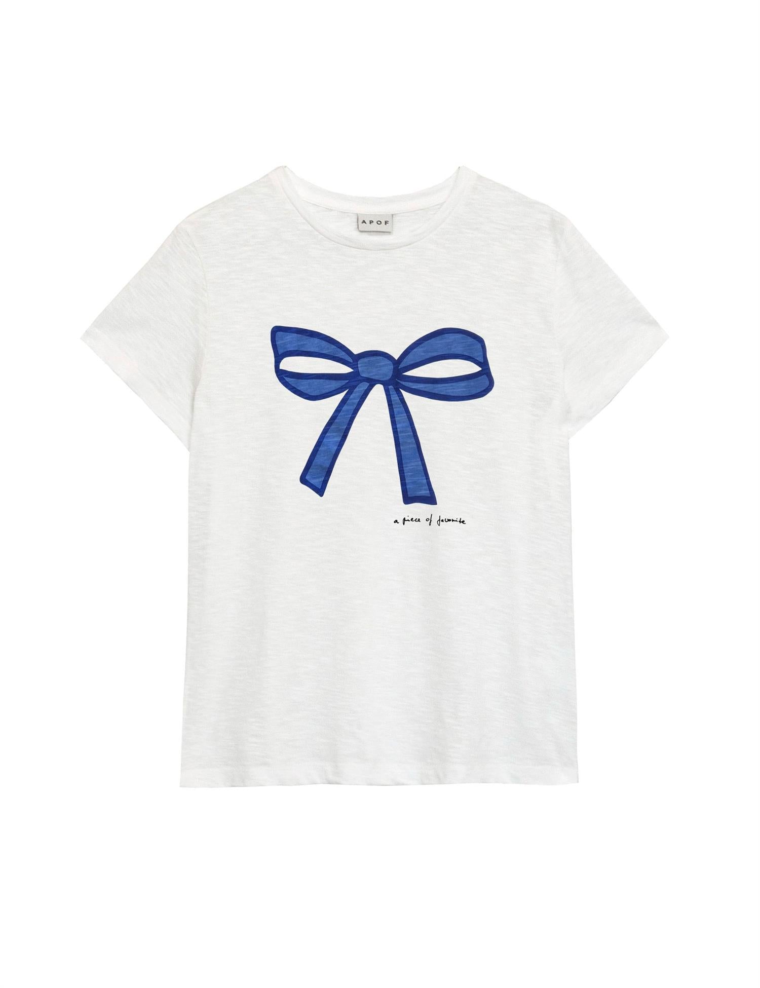 Timeless simplicity meets playful elegance in this beautifully crafted T-shirt. Made from ultra-soft 100% flame cotton jersey, it ensures all-day comfort while maintaining a refined look. The "One Bow" print in a deep blue shade is one of APOF’s beloved signature designs, adding a touch of charm to any outfit.