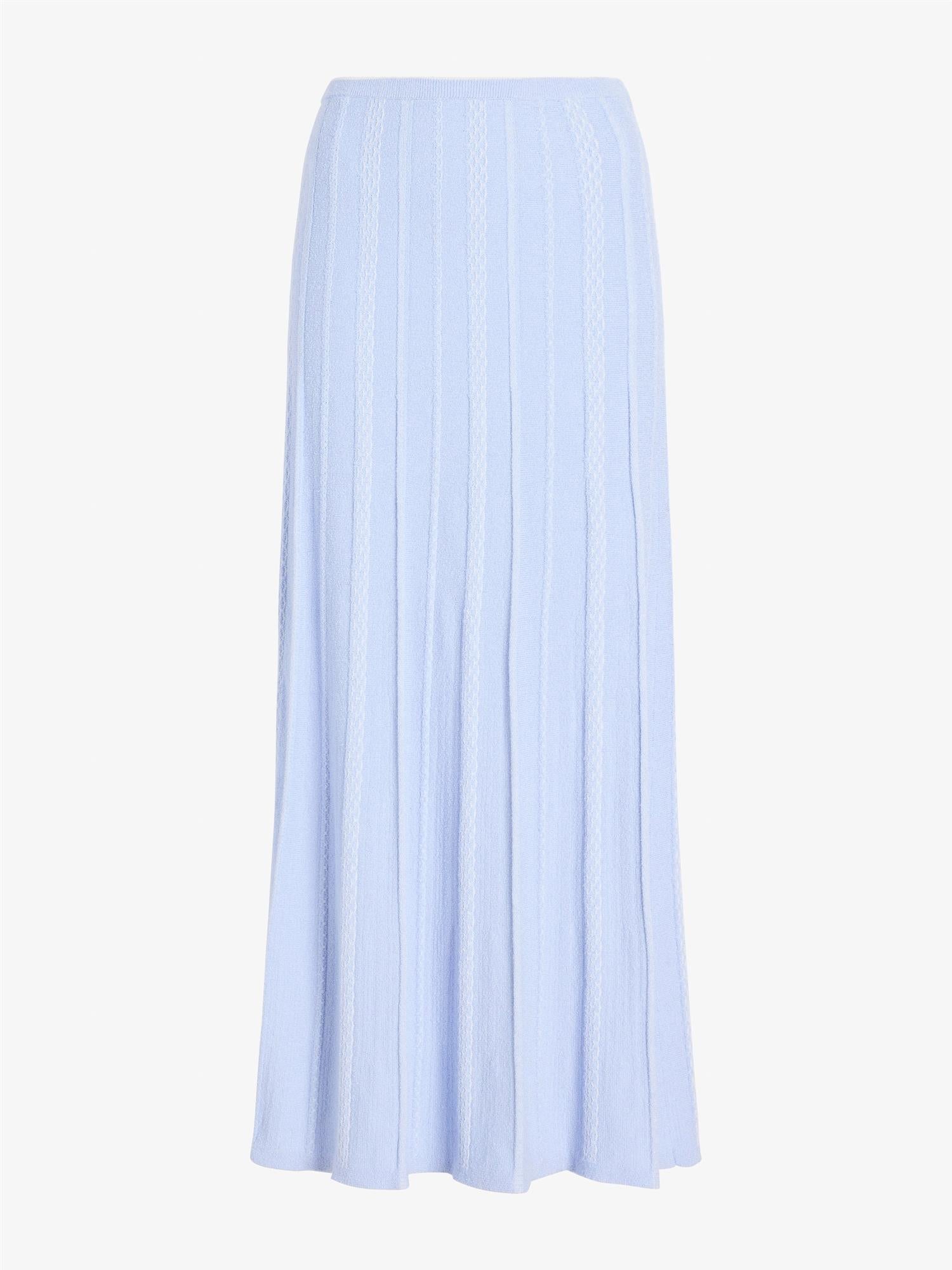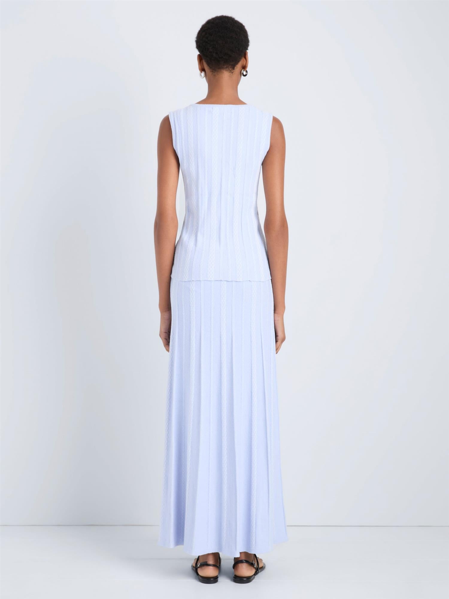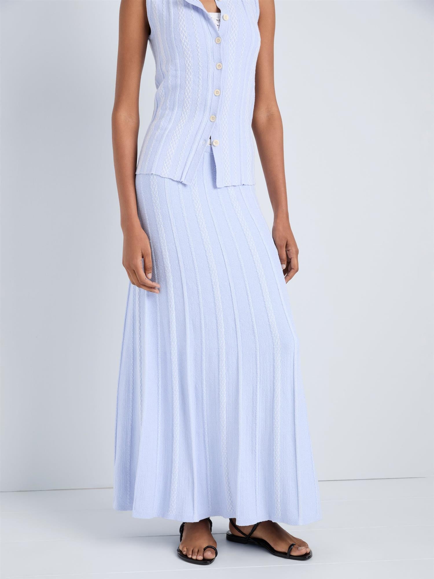 The Morena Skirt in Textured Knit is crafted to an ankle-length silhouette with a slim waistband and subtle knit-stripe detailing.