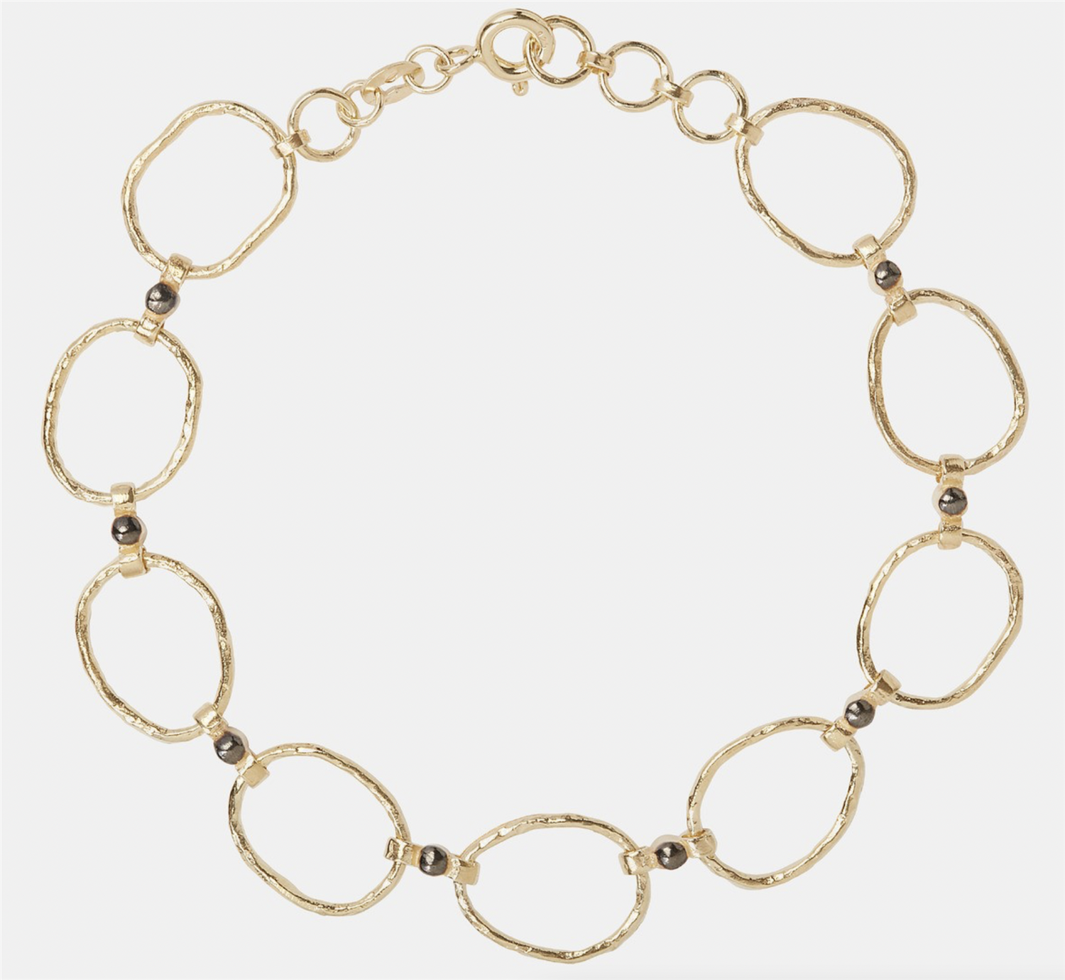 "Ellipsis" bracelet slightly hammered, in silver coated 24 karat gold and oxidized silver.